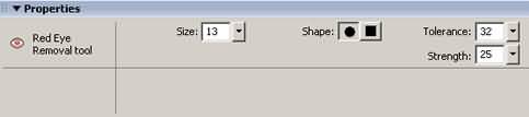一如FW內多數其他工具,你可以在屬性面版下調整紅眼移除工具的相關設定,見下圖: