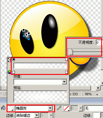 2.然後新建一層,繪制眼睛中的高光,設置填充類型為“橢圓形”,然後左右顏色都選白色,將右邊白色的不透明度設置為0。