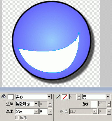 4.單擊“圖層面板”上的“新建位圖圖象”按鈕,新建一層,起名為“嘴”,然後選擇“鋼筆”工具,在“屬性面板”中選擇填充方式為“實心”、白色。其描邊種類為無,勾畫出一個娃娃的嘴的形狀。