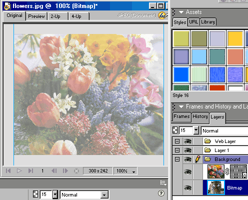 把需要隱藏的圖案放到最下層,選中填充的矩形和欲蓋彌彰的圖片組成遮罩。Modify-->Mask-->Group as Mask