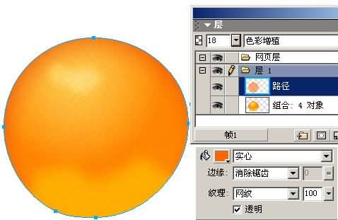 8、復制橙子外形圖層,填充色#FF6600,紋理選網格,制出橙子的表皮紋理,設為色彩增值,透明度18;