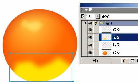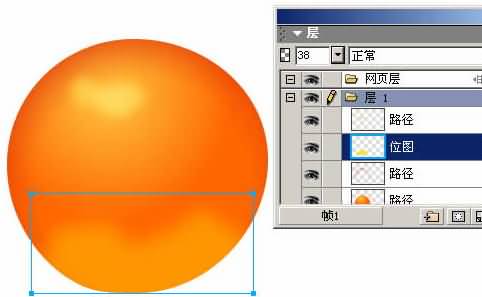 5、復制橙子外形圖層,重新定義填充顏色,制出橙子背光面的陰影;