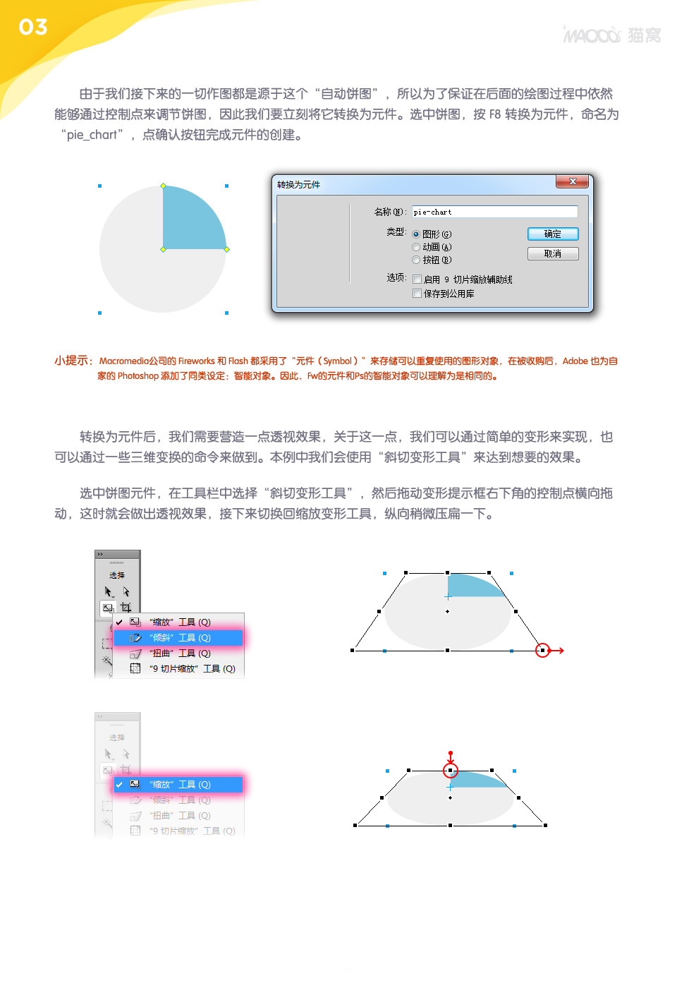 本例為Fireworks技巧實例教程,主要講解動態元件的創建方法,教程從介紹動態元件的概念、創建一個