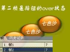 1.打開作好的導航圖片,在第一桢做好按鈕一般狀態圖形,在第二桢上,做好按鈕over狀態圖形,如圖所示: