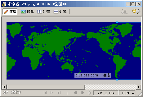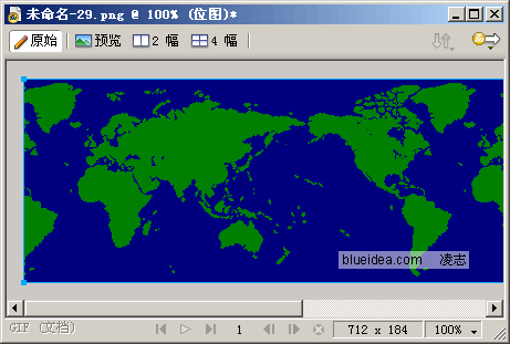 3、進入Fireworks,新建文件,粘貼。粘貼後利用裁剪工具將世界地圖部分裁剪下來,裁剪時一定要放大比例進行裁剪,精確一些。