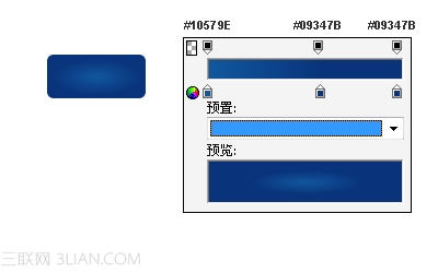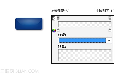 6、繪制一個90px×37px的白色圓角矩形,在復制一個設為藍色放在白色矩形上方位置向下1px,選中兩個矩形,修改->組合路徑->打孔。並使用條狀填充;