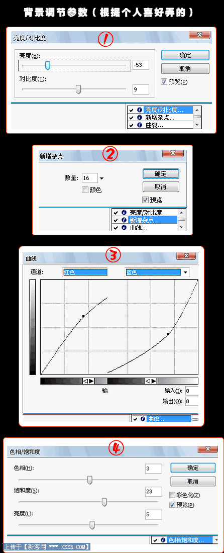 2、Fireworks中新建500*350畫布,插入背景圖片。然後調整亮度和色調如下。