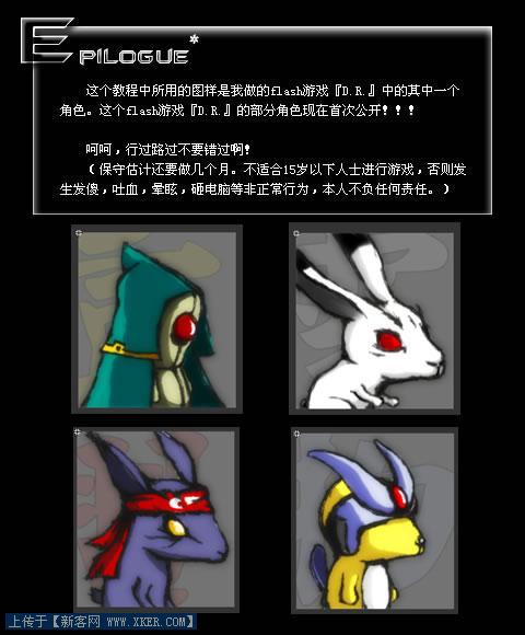 這個教程中所用的圖樣是我做的flash游戲『D.R.』中的其中一個角色。這個flash游戲『D.R.』的部分角色現在首次公開!!!