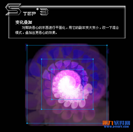 對那塊惡心的東西進行平面化,用它的副本變大變小,改一下混合模式,疊加出更惡心的效果。