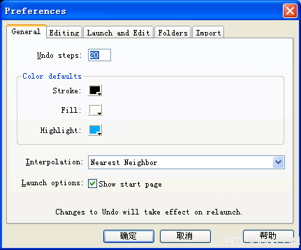 選擇Edit(編輯)-Preferences(參數選擇),將Interpolation(插值法)改為Nearest Neighbor(最近的臨近區域),注意在效果做完以後要把它改回去,不然以後縮放圖像會很難看。