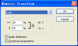 選擇Modify(修改)-Transform(變形)-Numeric Transform(數值變形),輸入20,將圖像縮小20%。