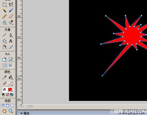 1、使用Fireworks矢量造型工具下的星形工具繪制一個星星,並選擇填色為紅色。