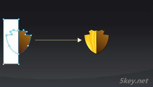 7.(此處一步是小編加進去)通過路徑組合打孔得到月牙形,然後和開始畫的盾的路徑組合為蒙板,然後再進行線性漸變,得到高光部分。
