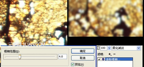b.高斯模糊,目的是為了下面應用減淡等效果時不出現雜點