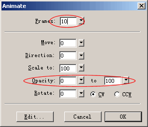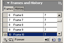 9.現在,大功告成了,點擊播放按鈕浏覽一下吧,是不是速度太快了,沒關系,按住Shift鍵,選中所有的幀,雙擊,將幀速調整為10,現在速度可以了吧! 10.變色是實現了,可沒有文字的Banner是沒有用的。加文字動畫可以根據自己的需要設置,這裡我羅嗦一下例子中的幾個文字動畫效果,大家也可以進一步熟悉動畫制作的一些技巧。