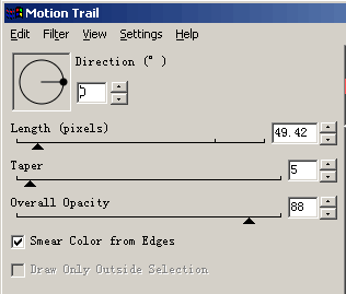 (模擬條形碼,詳細教程見:http://)然後羽化,在Properties面板裡選擇Effects,選擇Motion Trail...濾鏡,進行兩次“動感”一次角度為0,如下圖,一次為180。