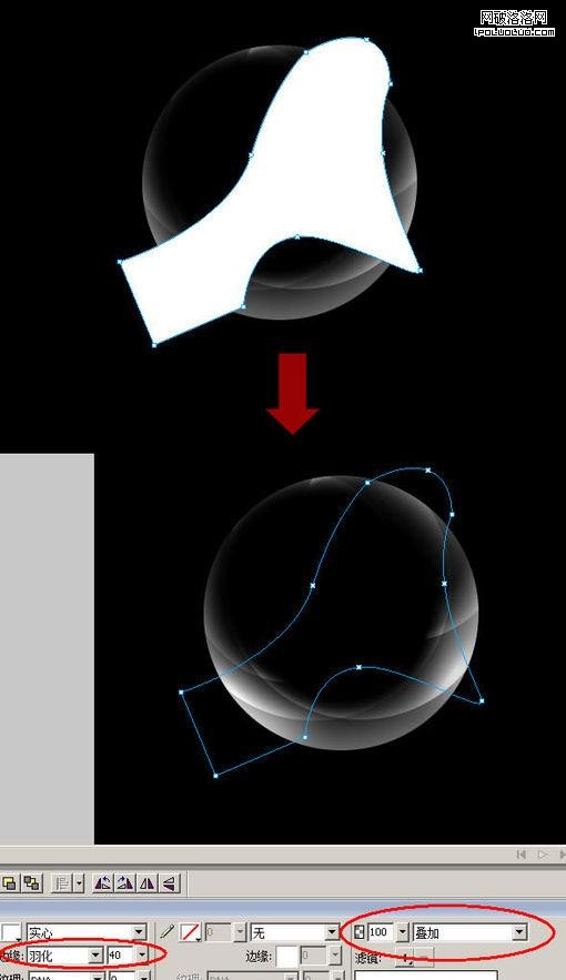 我們已經創造完了所有的圓,現在畫一個不規則多變形。羽化為40%