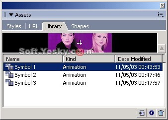 9)單擊層面板右下角的按鈕新建一個圖層。然後將如圖10所示的Library(庫)面板中的Symbol 1拖到畫布中去,並放置到Banner的最右角,如圖11所示。同時記住它屬性面板中的位置信息(X:282,Y:0)。