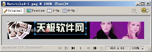 (21)在幀面板中選擇第1幀,然後在層面板中選擇Layer 3,接著新建一個Layer 4,選擇工具箱上的文本工具為圖像添加“天極軟件網”文字,如圖23所示。