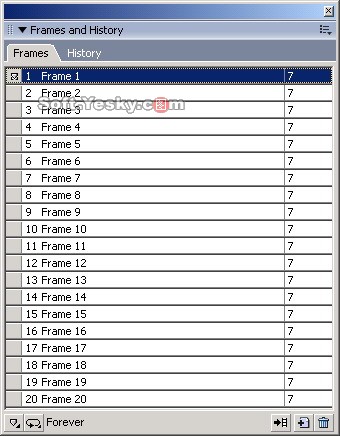 (12)選擇OK這時候我們發現幀面板中出現了10個幀,如圖14所示。