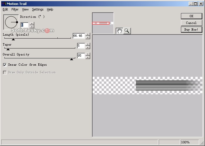 (28)再一次使用Motion Trail特效,不過將方向設為180度,其他的設置和上面一樣,得到圖33所示的圖像效果。