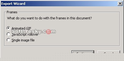 (34)回到圖像第1幀,點擊下面工作區狀態欄的圖標就可以預覽圖像效果了。適當進行調整然後就可以選擇導出向導,在導出向導對話框中選擇導出類型為GIF動畫,如圖41所示,這樣就可以將圖像導出為GIF動畫了。