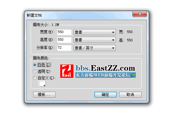 點擊【文件(F)】- 【新建(N)】新建一個寬:550pxX 高:550px的文檔,畫布顏色為白色。如圖: