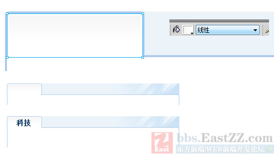 在 長條1 上 用 “矩形”工具 拉出一個 寬:165px 高:25px的長條,命名為:長條2 ,填充類別為:漸變》線性, 顏色填充為:左:#EBF4FB 右:#C3DFF5,用 “指針”工具 反復調整漸變樣式,最終達到如圖效果: