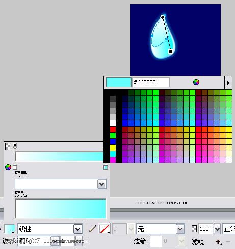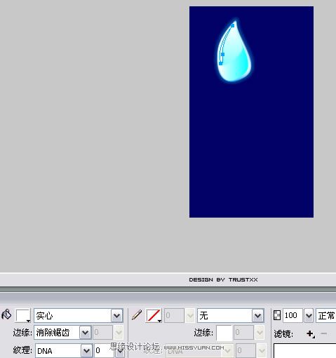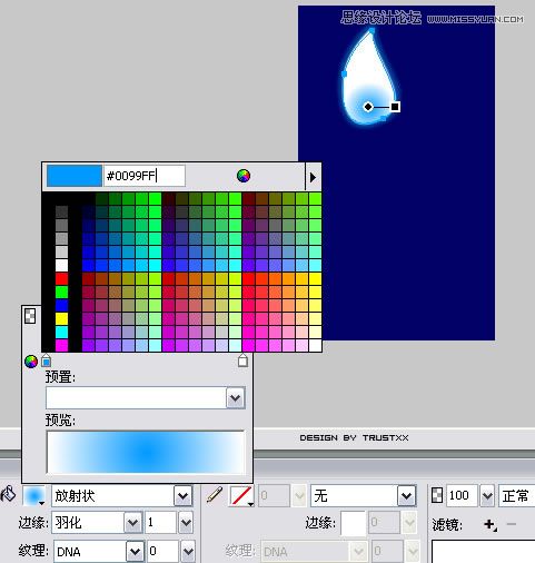 隨意新建一個畫布,填充背景色為#000066,鋼筆勾出基本形狀,羽化邊框(半徑1),填充放射性漸變,外加濾鏡外發光,效果如圖: