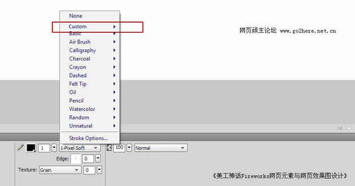 1、自定義筆刷,Fireworks CS5終於能夠像他的老大哥PhotoShop那樣自定義筆刷樣式了,甚至在Fireworks CS5中可以導入PhotoShop和illustrate所定義好的筆刷效果。
