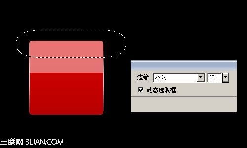 5、將1px邊框矩形平面化,然後選擇選區工具,調整羽化值為60,分別對上下進行刪除,制作高光效果。此時可將背景調整為黑色利於調試。