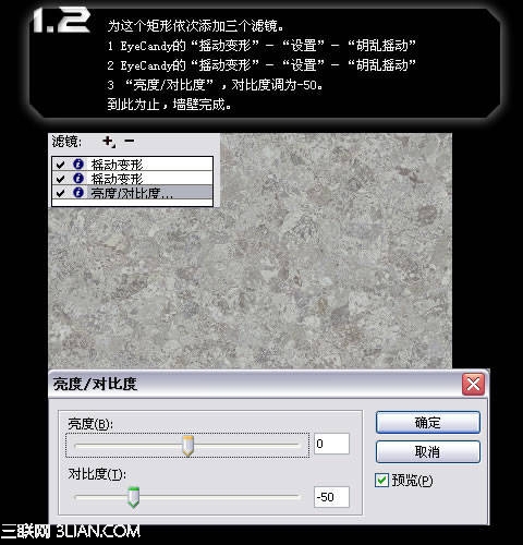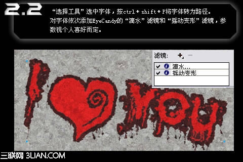 對字體依次添加EyeCandy的“滴水”濾鏡和“搖動變形”濾鏡,參數視個人喜好而定。