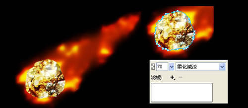 b.將隕石復制並放置在矩形框的上方,設置透明度和圖層疊加方式,目的是為了使隕石更清晰一些。