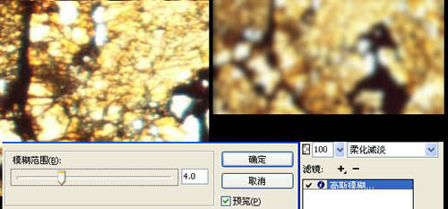 b.高斯模糊,目的是為了下面應用減淡等效果時不出現雜點