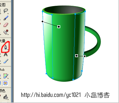 3、使用矢量的鋼筆工具+部分選擇工具來調節杯身。主要是調節中下部,上方無所謂,因為最後要用杯口擋住的。