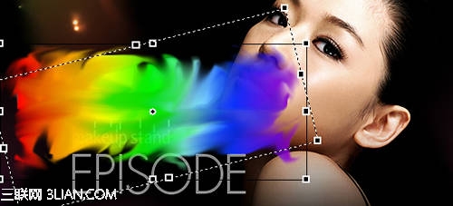 3、調整好顏色後將這個彩色的圖形平面化,也就是將他轉換為位圖。看到左邊工具欄的模糊工具(R)麼,切換到塗抹模式。隨意的塗吧,我們需要隨意的效果。不過千萬記得要選中矩形,千萬可別把咱們這MM漂亮的臉給塗了。
