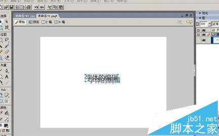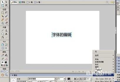 6、寫上‘字體的編輯’這幾個字,如圖所示,在畫布的下面有屬性欄,可以設置你字體的屬性