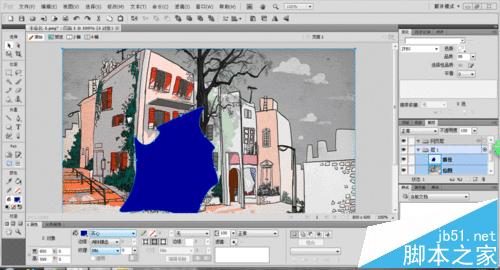 6、大家注意到了嗎?上面我做的哪個蒙版圖片模糊不清,那這是什麼原因呢?原因就在於我們在運用鋼筆工具畫蒙版區域時畫出來的區域自動填充成了藍色。這個時候我們就需要把藍色更改為白色,這樣做出來的蒙版就清晰了。