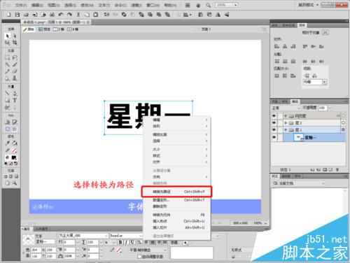 4、在這裡我們將文字轉換為路徑,!轉換為路徑後線框變為四個藍色的點分布在原先線框的四個角!,這一步非常重要,後面的操作基本就靠這裡的路徑操作了,所以請大家仔細注意
