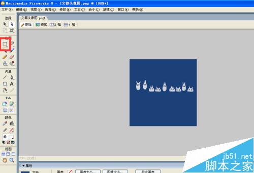 2、接著大家可以看到,fireworks的基本工具都在左邊的一豎排,大家看見選取框工具了,用鼠標點擊選擇