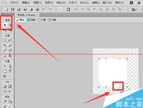 5、選中左上角的選擇工具後,通過鼠標拖拽圓角矩形周圍的小點,可以調整矩形圓角的弧度,調整到最美觀的程度即可,這個只能憑個人感覺了。