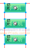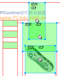 把這三個按鈕全部選中,並在任意一個按鈕上點擊鼠標右鍵,然後從彈出菜單中選擇“插入切片”項。這時會彈出一個提示窗口,可直接點擊“多重”按鈕。這樣,就為這三個按鈕建立了導出切片。如圖01。