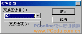 松開鼠標後會立即彈出一個“交換圖像”的設置窗口,在下拉菜單上選擇與“手機”按鈕切片進行交換的圖像所在的幀。在這裡我們選擇“幀2”。如圖05。