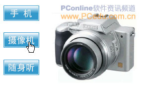 用相同的方法繼續為“攝像機”和“隨身聽”按鈕在“交換圖像”對話框中建立各自的圖像切片鏈接。完成後我們就可以按F12鍵在浏覽器中查看了。怎麼樣,效果還不錯吧!如圖06。