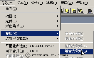 8、同時選中矩形路徑和上層的位圖對象,選擇菜單“修改|蒙版|組合為蒙版”命令,組成遮罩組。