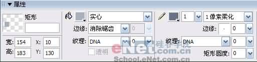 2. 在工具欄中選擇矩形工具,繪制一個154* 183的矩形,在屬性面板中設置這個矩形的填充色為#A9B1BE,描邊設置為1像素的柔化,顏色為#677387,如圖所示。