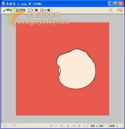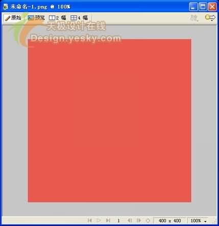 1、首先在Fireworks中新建一個大小為400×400的畫布,在這裡我們將畫布顏色自定義為紅色,如圖1所示。