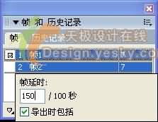 15、對圖像修改完以後,按住Shift鍵將幀面板中的幀1幀2選中,雙擊鼠標,出現幀延時的時間設置,我們將時間設為150/100秒,如圖15所示。
