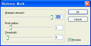 最後選擇Filters(濾鏡)-Sharp(銳化)-Unsharp Mask(鈍化蒙板)