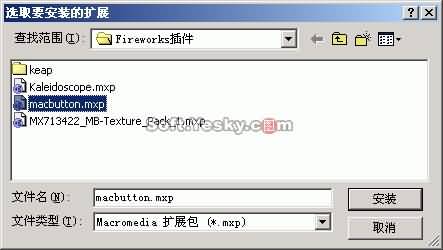 我們先將Macbutton V2.01下載到自己的電腦上,然後准備在Fireworks MX 2004中安裝這個擴展插件。